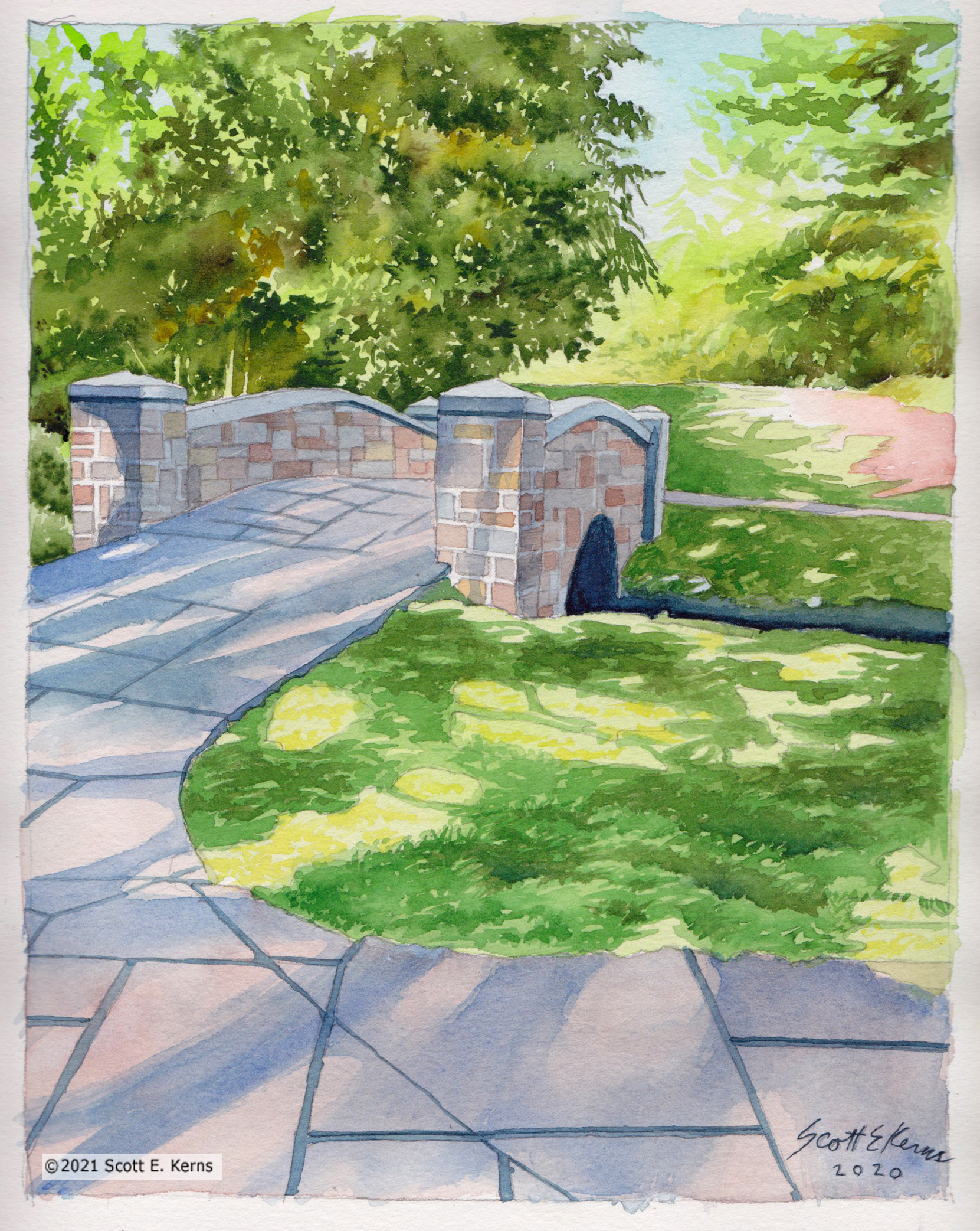 This watercolor was sold at a church fair silent auction. the subject of the painting is located a short walk from the church in a beautiful park that features many walking paths and footbridges. Tags watercolor painting bridge landscape