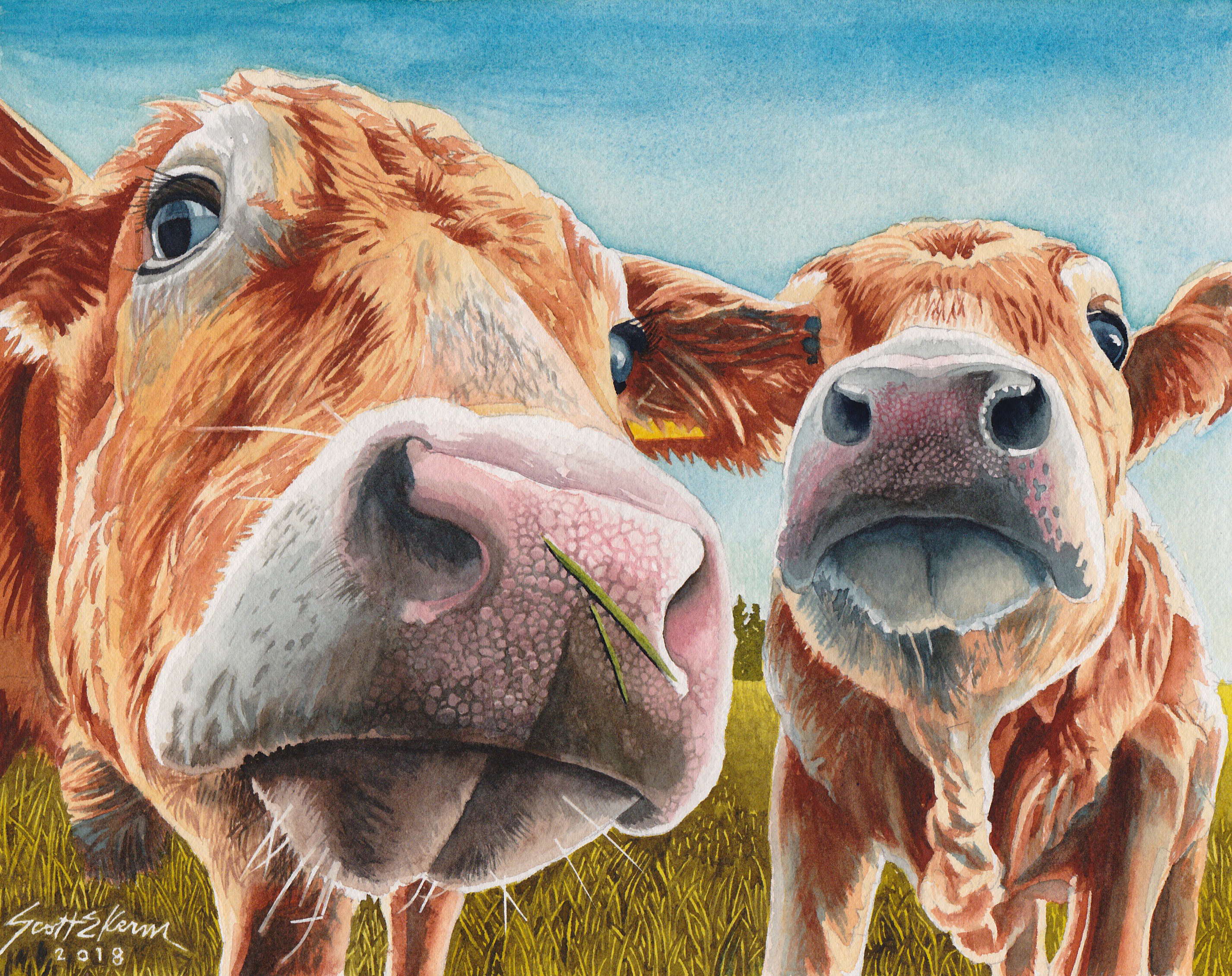 This watercolor painting was sold at a silent auction that benefitted the University of New Hampshire's CREAM program. CREAM stands for Cooperative Real Education in Agricultural Management. Tags watercolor painting cow cows