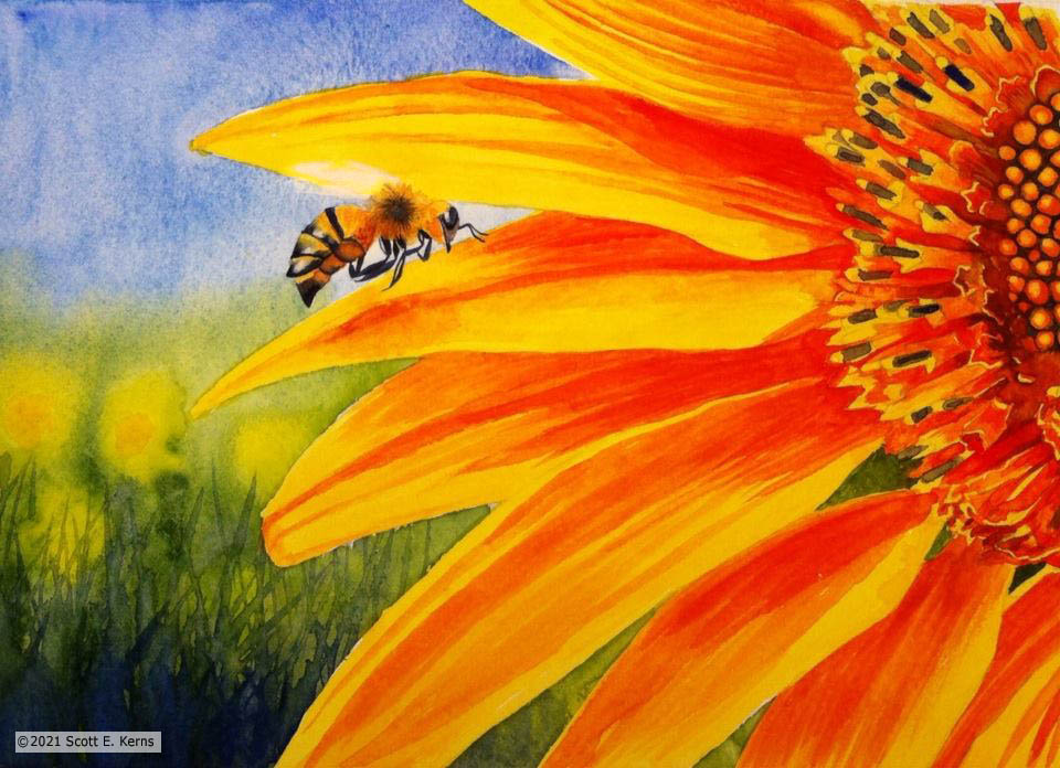 This self development painting references a PhotoShop composition from royalty free images I found online. Tags watercolor painting honey bee sunflower