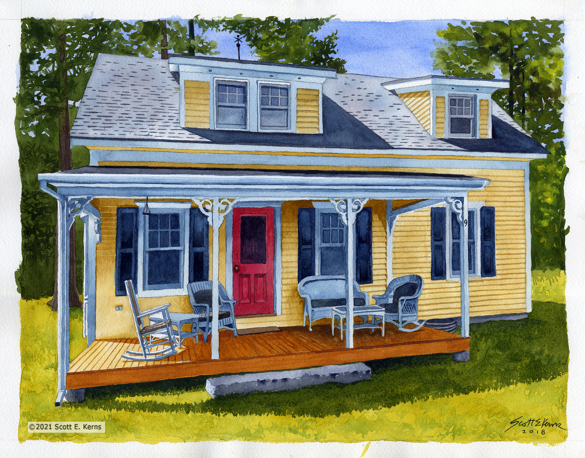 This lakeside cottage was to be the new home of a person on the brink of retirement. the painting was commissioned by co workers who presented it as a gift. Tags watercolor painting cottage