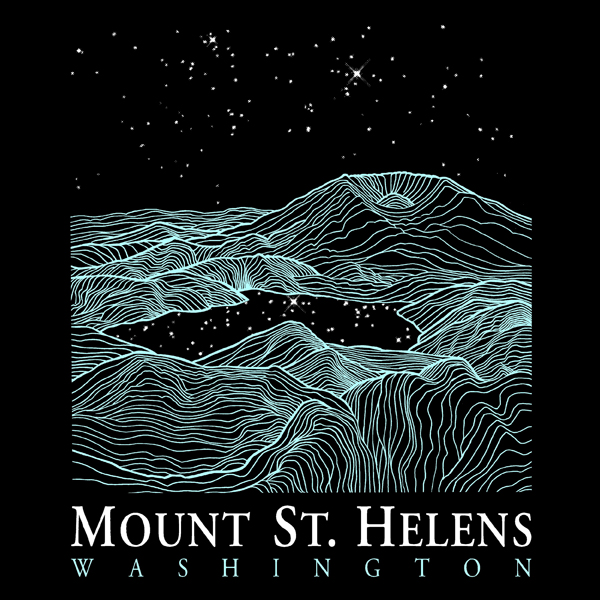 This tee shirt design was sold at a souvenir shop at the Mount Saint Helens National Park. The design features a custom illustration inspired by the lines on geodesic maps. The image shown on this page is a photograph of a printed shirt. Tags Screen Printing Apparel Graphics Mountain National Park Souvenier Commercial Illustration